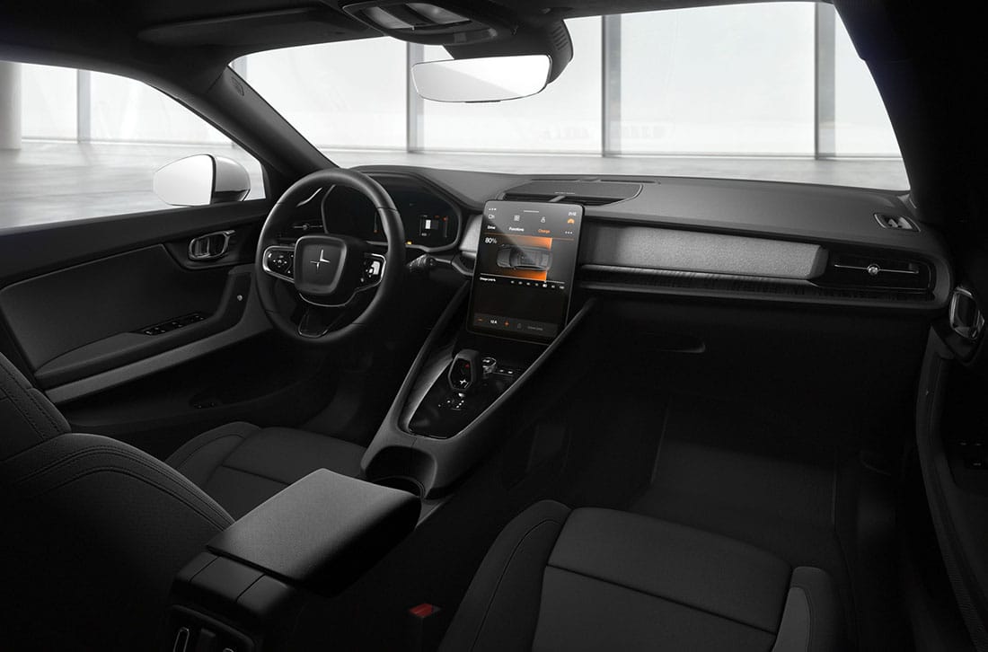 El habitáculo disfruta de un acabado sobrio con predominancia en tonos oscuros. De primer vistazo, destaca su pantalla tipo tablet de 11 pulgadas con software Android que integra el auto con aplicaciones como Google Maps y Google Assistant. Además, el Polestar 2 incorpora un sistema de reconocimiento de voz y una nueva llave inteligente.
