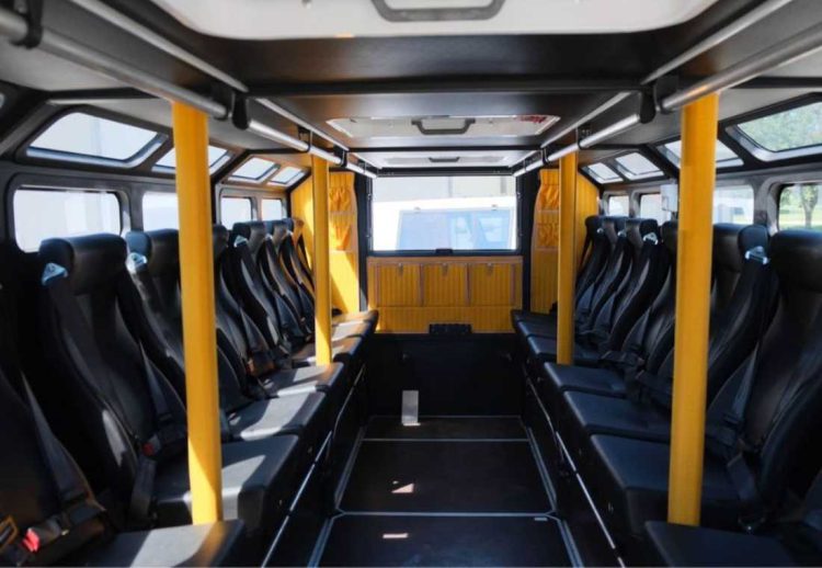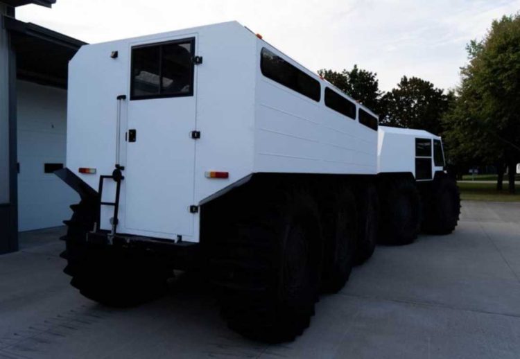 Detrás de esta creación está el fabricante Sherp, especialista en todo tipo de vehículos pero enfocados en operaciones de exploración y rescate. De ahí que hayan puesto al límite su capacidad, dandole a vida al modulo Ark 3400, añadiendo un remolque trasero con un gran espacio para 22 pasajeros.