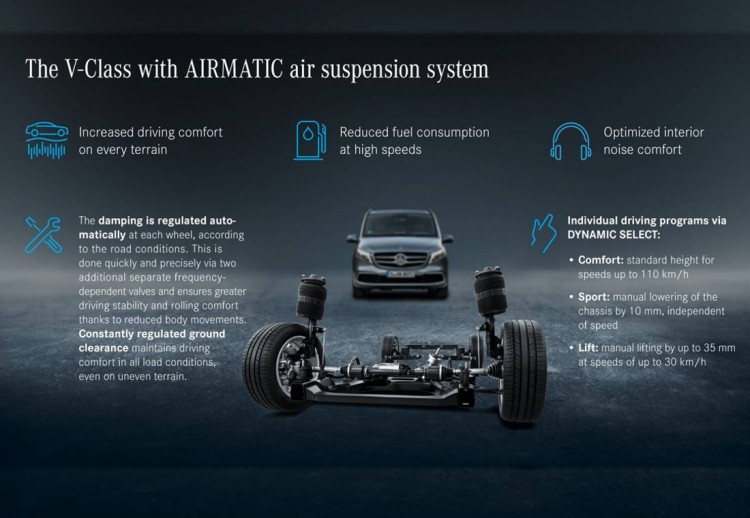 La firma de la estrella está trabajando en una versión más cómoda del Mercedes-Benz Clase V. Se trata de la incorporación de una suspensión neumática Airmatic.
