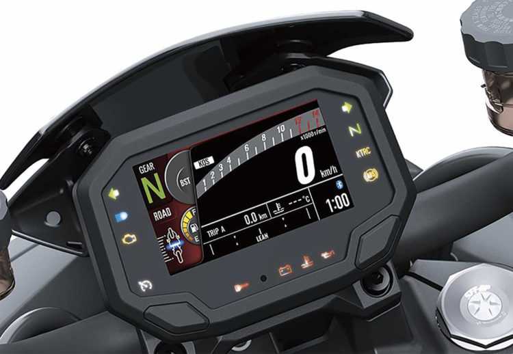 Detrás de la visera, se agregó una pantalla TFT, en la que se visualiza el colorido de todos los datos e información necesarios. El precio en Estados Unidos para la Kawasaki Z H2 2020, es de $ 17,000 dólares.