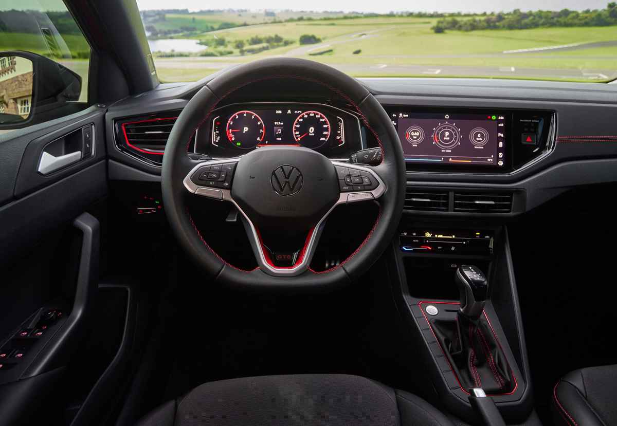 Por otro lado, el Polo GTS cuenta con un cuadro de información digital «Active Info Display» con pantalla de 10,25 pulgadas. Brinda una presentación deportiva, con medidores en tono rojo. A esto, se suma un cronómetro para tomar el tiempo en pista.
