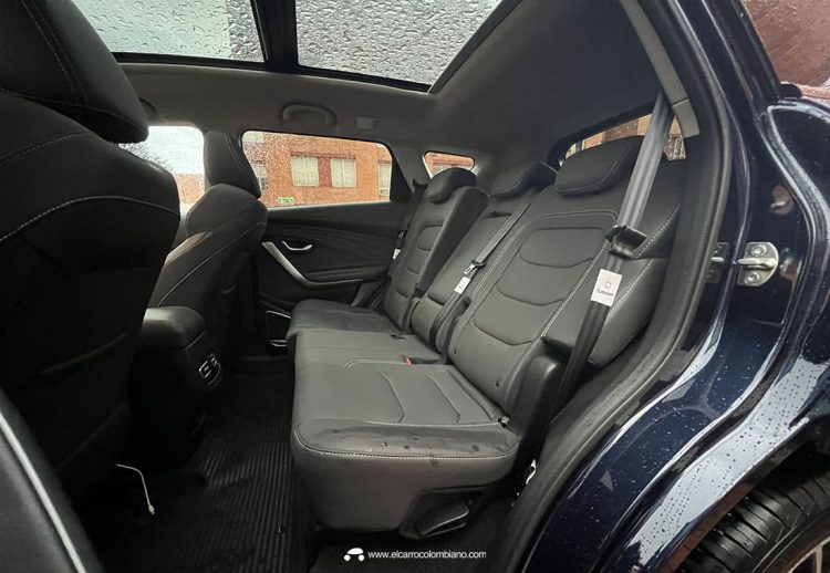 La habitabilidad en la segunda fila es óptima, con gran espacio para tres ocupantes, teniendo la posibilidad de mover la silla y reclinar el espaldar. Hay buena oferta de espacios para objetos, sumado a un techo panorámico de gran tamaño.